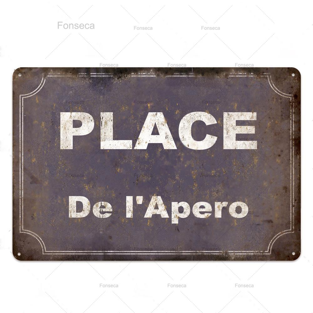 Place Des Aperos металлическая табличка, винтажная металлическая жестяная вывеска во французском стиле в стиле ретро, бар, паб, клуб, Настенный декор, железная живопись, декоративная тарелка 20x30cm