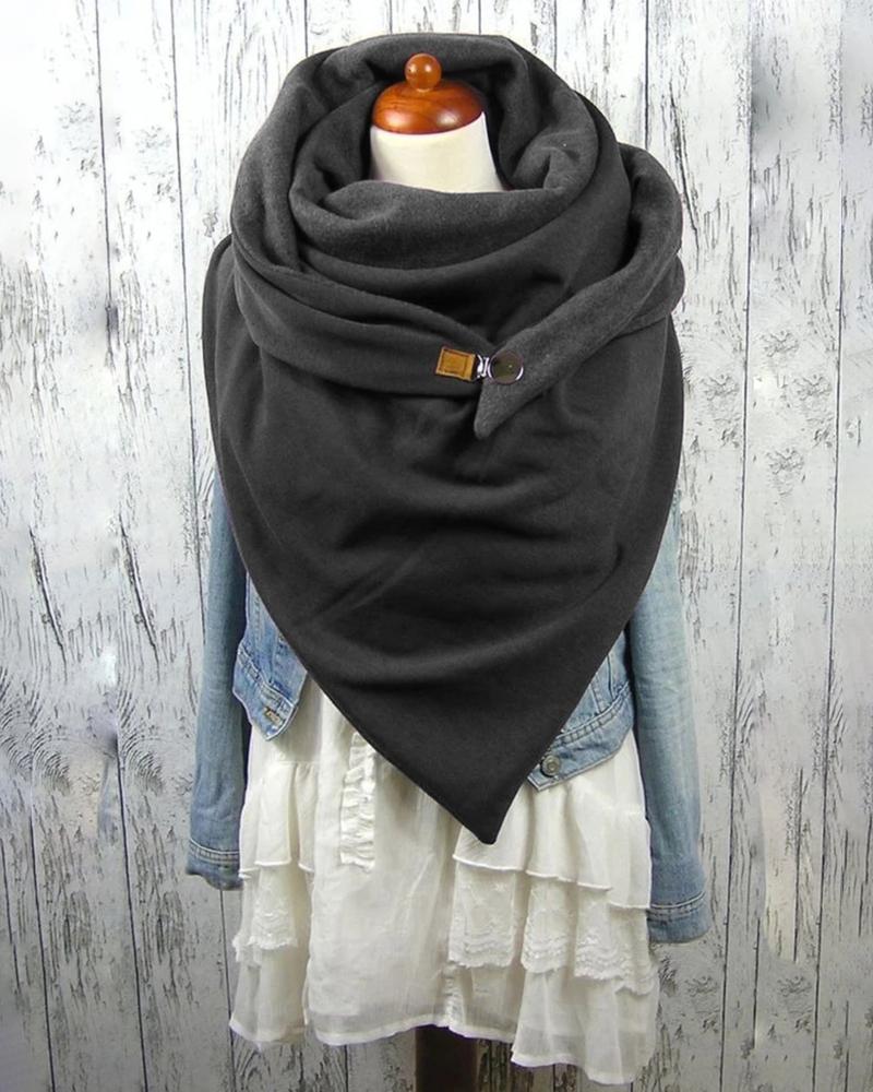 Plain Button Design Warm Scarf, Gray