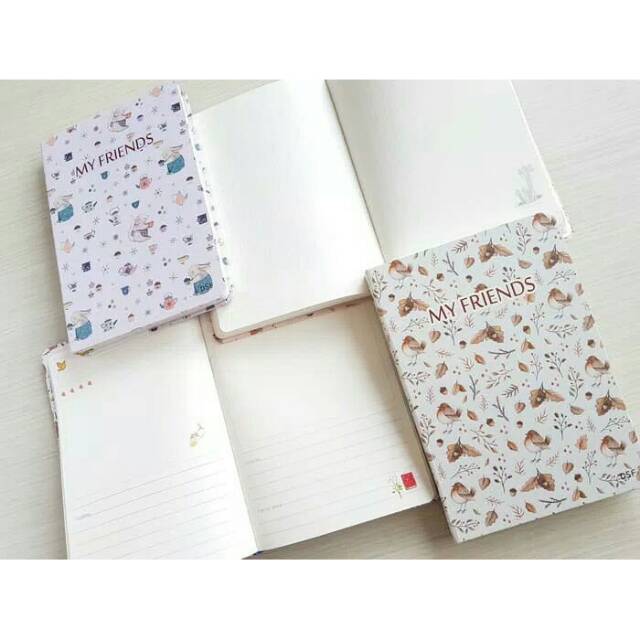 Planner diary My Friends ini terbuat dari bahan kertas tebal berkualitas, hardcover. Bagian dalam terdiri dari weekly planner, kertas bergaris kotak, dan kertas bergaris serta kertas kosong memo. Sangat cocok untuk mencatat berbagai perencanaanmu di tahun ini.