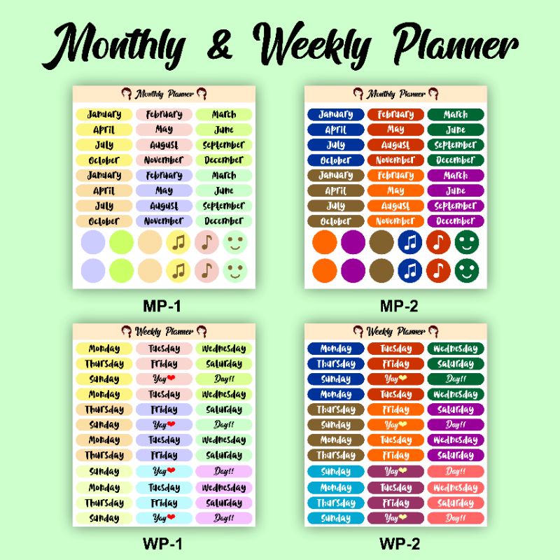 Planner Scrapbook Waterproof Sticker Bulan Minggu Monthly Weekly