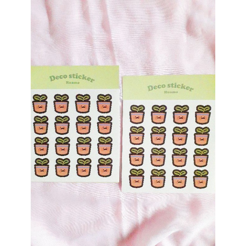 planty sticker ini satu set dapet 2 lembar dan designnya beda kayak di slide kedua yaa jenis stickernya kisscut jadi gampang bgt tinggal dikelupas
