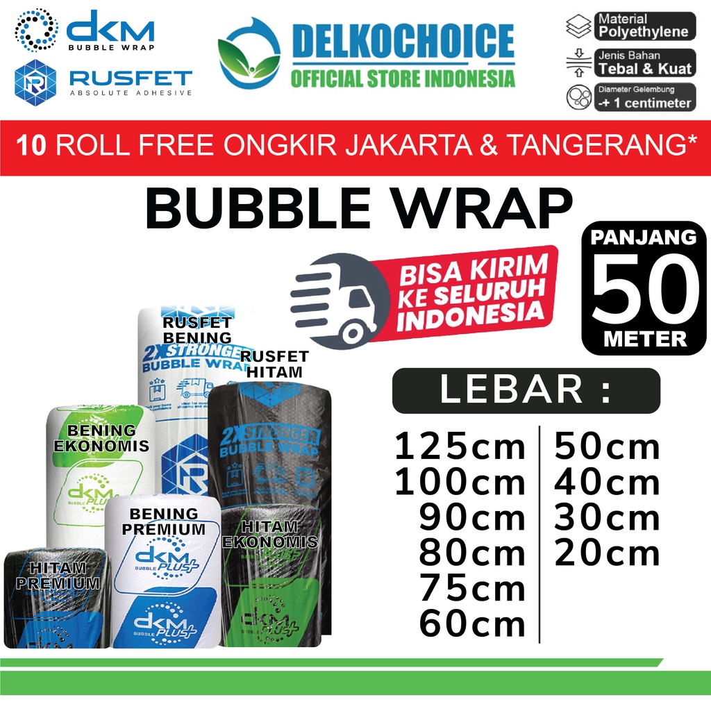 Plastik Bubble Wrap DKM+ RUSFET 50M TEBAL Bubblewrap Packing ROLL