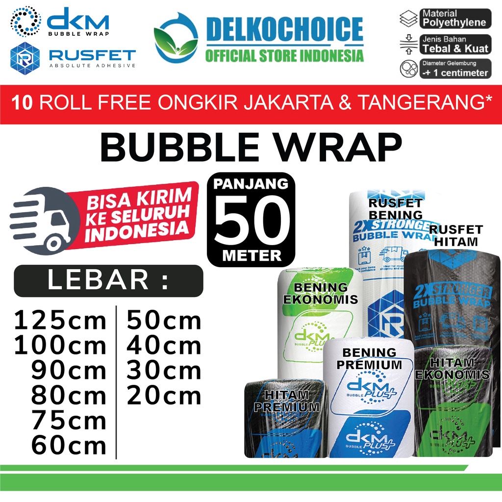 Plastik Bubble Wrap Packing 50M TEBAL DKM+ RUSFET Bubblewrap ROLL