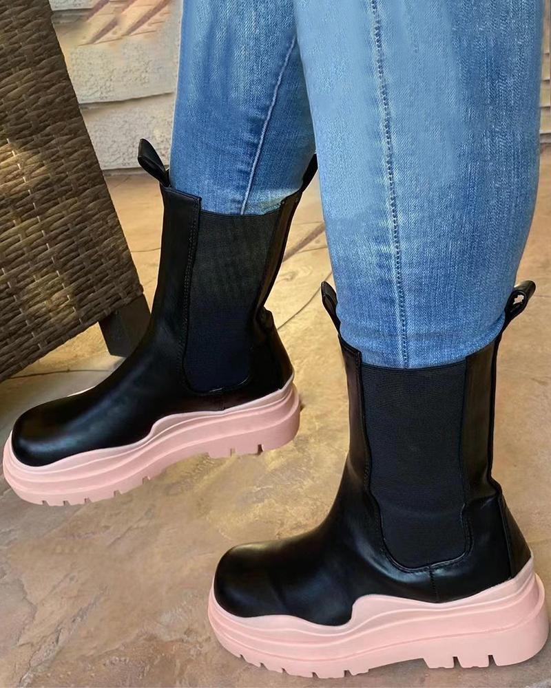 Platform Round Toe Martin Boots, Pink