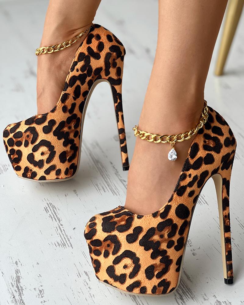 Platform Stiletto Heel Pumps, Leopard