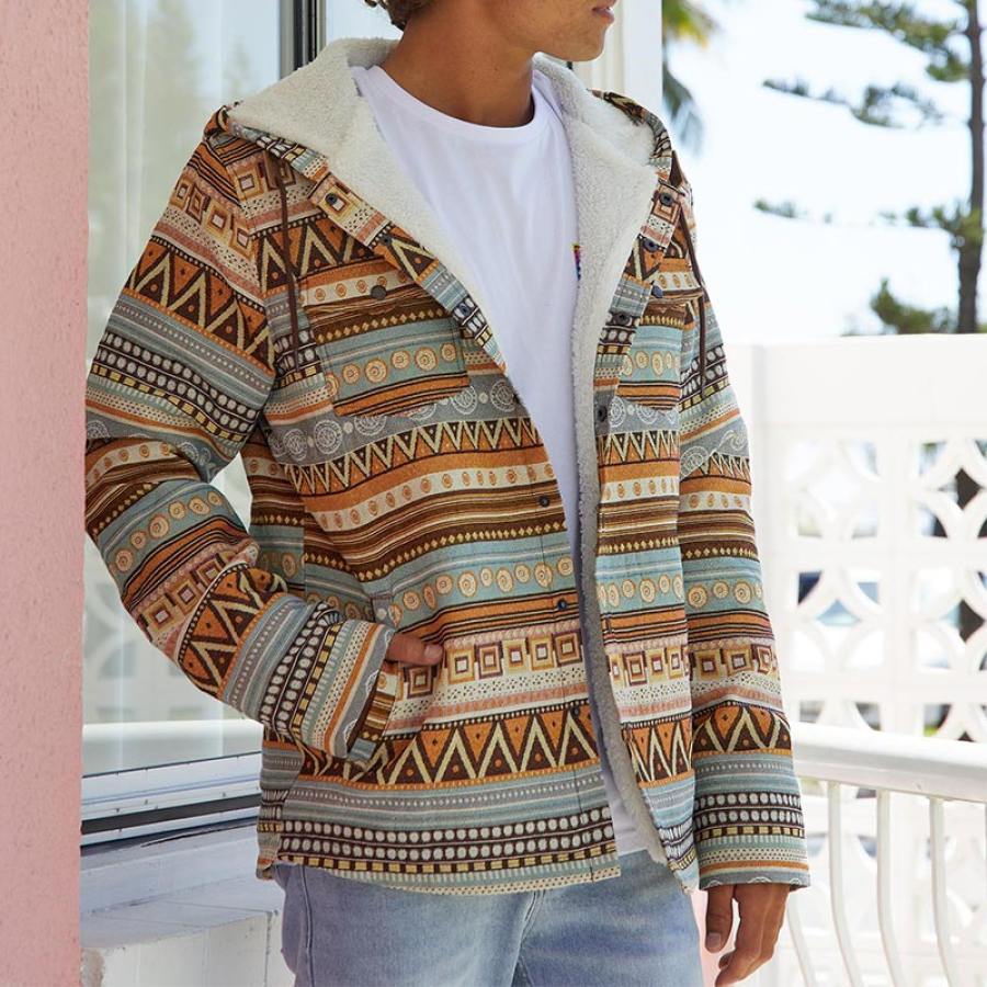 coats & jackets,plus fleece men's hooded jacket outdoor retro pocket ethnic pattern jackets aztec jacket