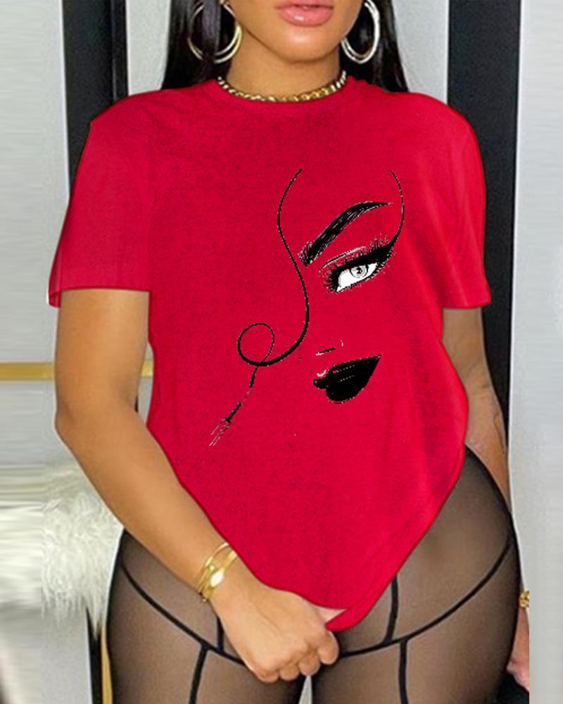 Plus Size Abstract Figure Print Casual T-shirt, Red