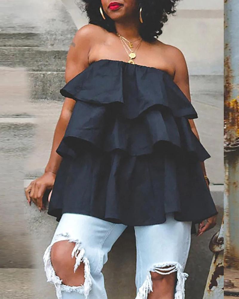 Plus Size Bandeau Layered Ruffle Hem Tank Top, Black