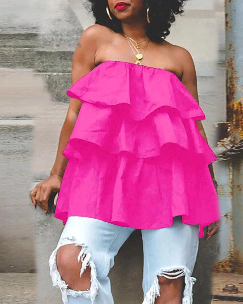 Plus Size Bandeau Layered Ruffle Hem Tank Top, Hot pink