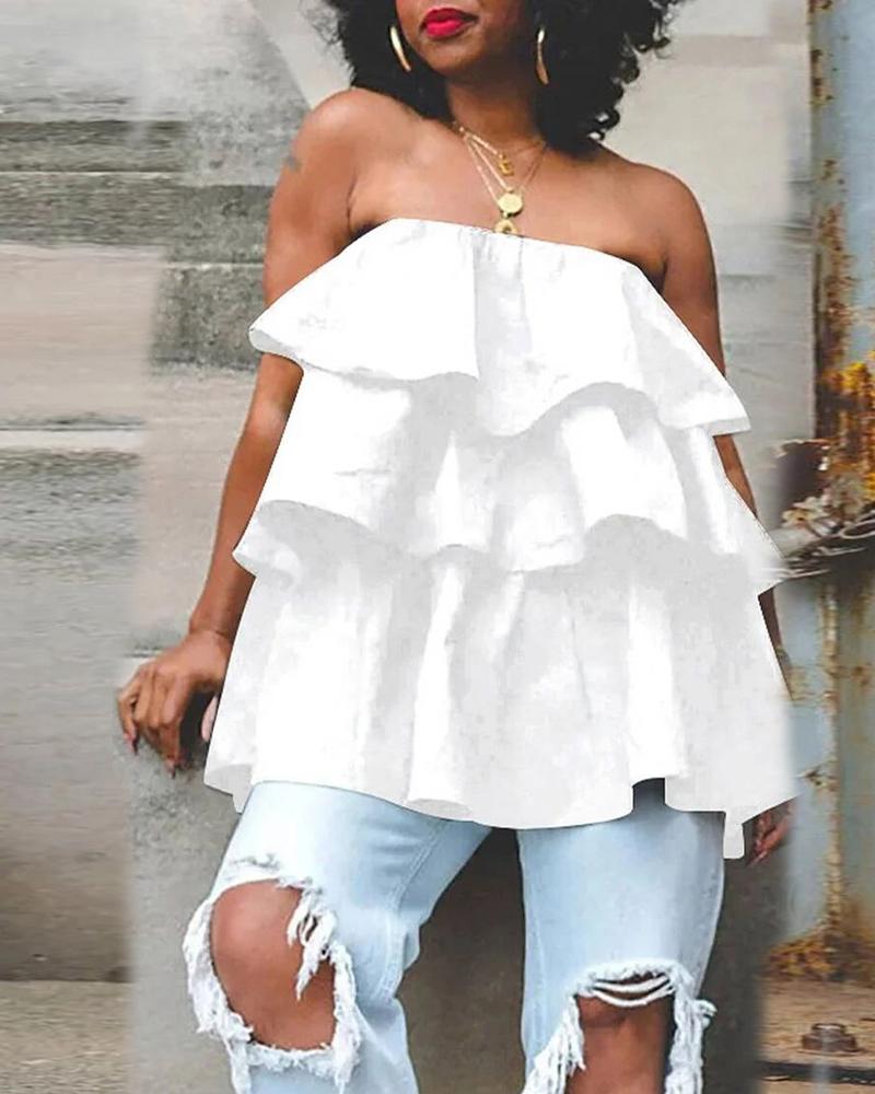 Plus Size Bandeau Layered Ruffle Hem Tank Top, White