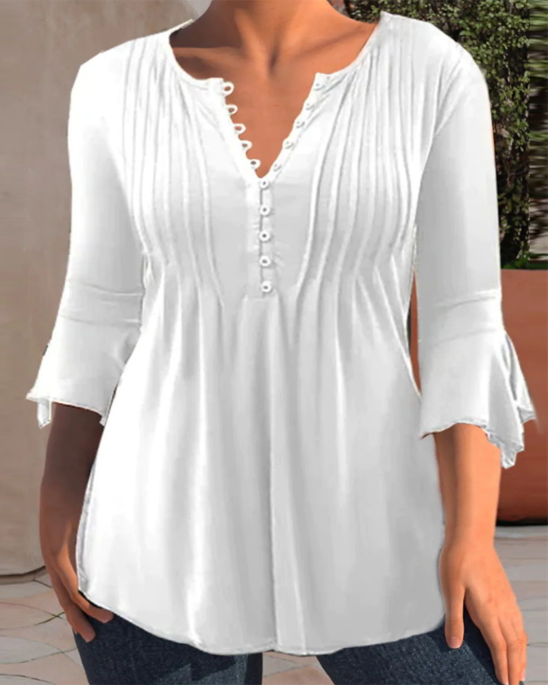 Plus Size Button Front Bell Sleeve Top, White
