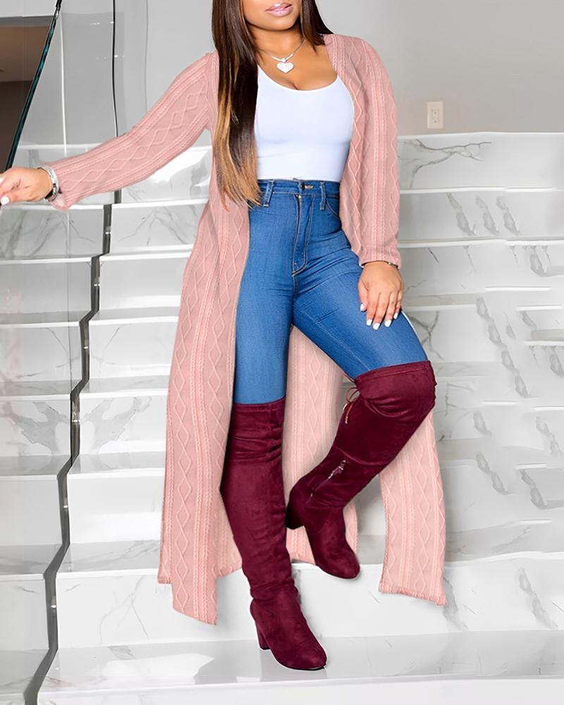 Plus Size Cable Textured Slit Longline Coat, Pink