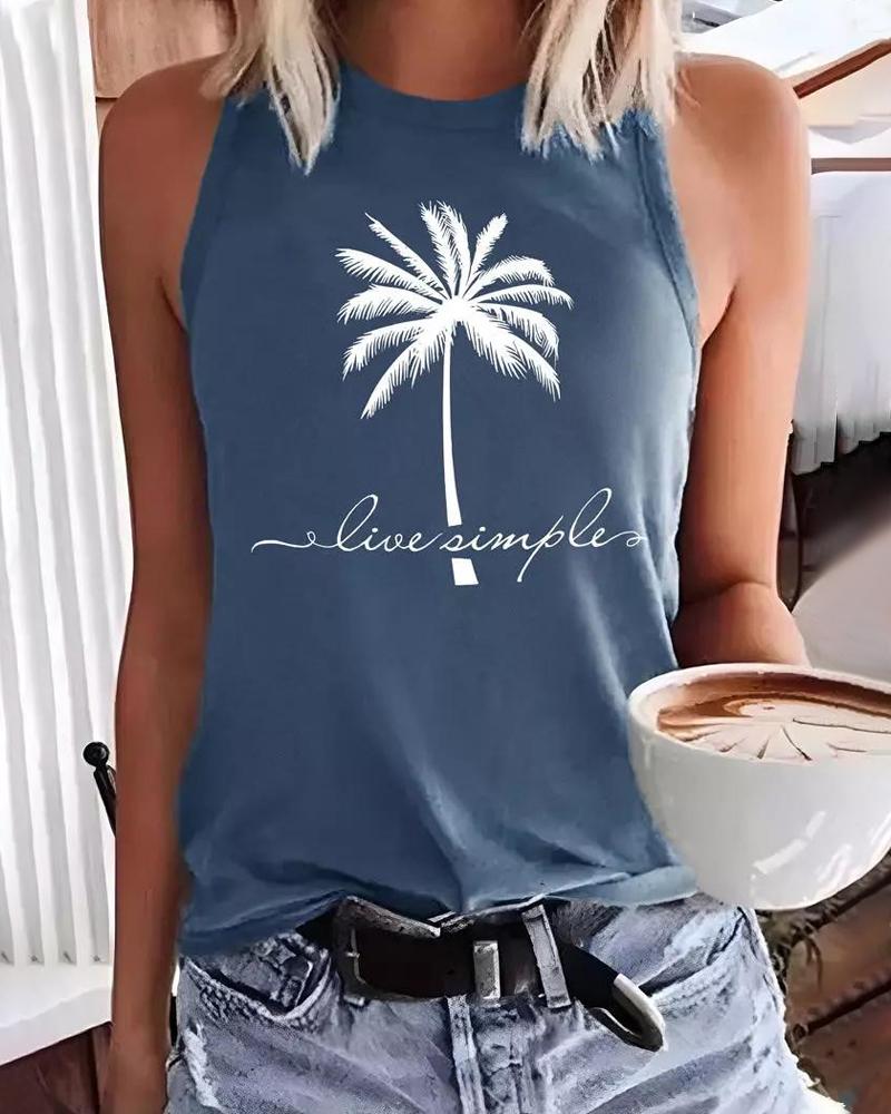 Plus Size Coconut Tree Letter Print Sleeveless Tank Top, Blue