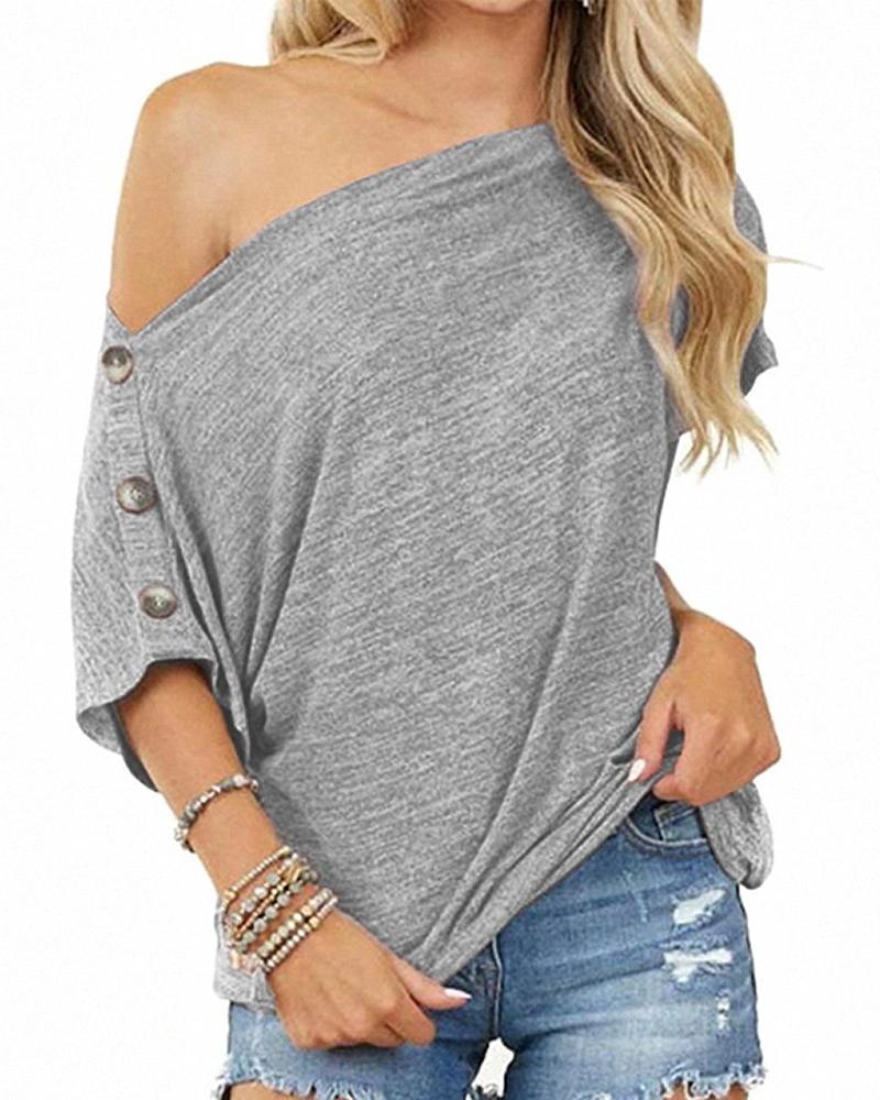 Plus Size Cold Shoulder Button Design T-shirt, Gray