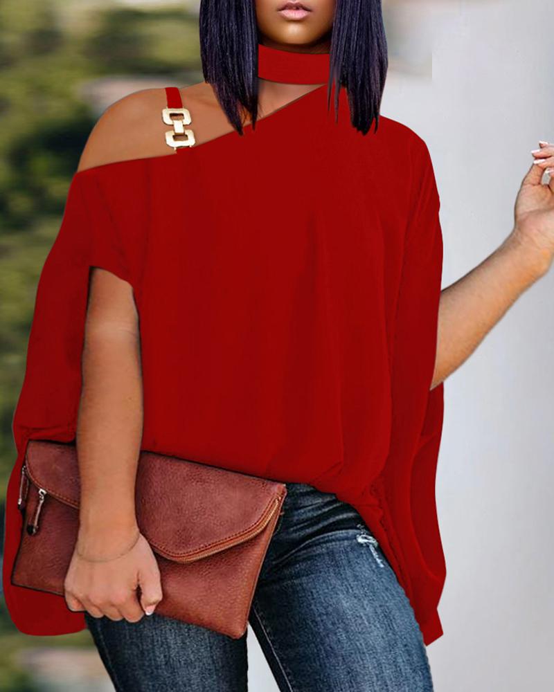 Plus Size Cold Shoulder Chain Decor Top, Red