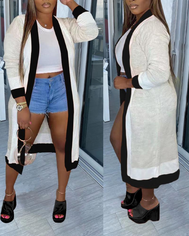 Plus Size Contrast Paneled Open Front Longline Cardigan, Black