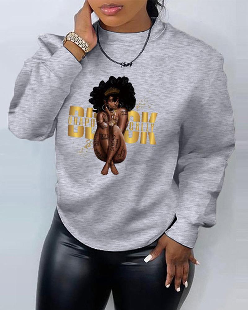 Plus Size Figure Letter Print Long Sleeve Sweatshirt, Gray