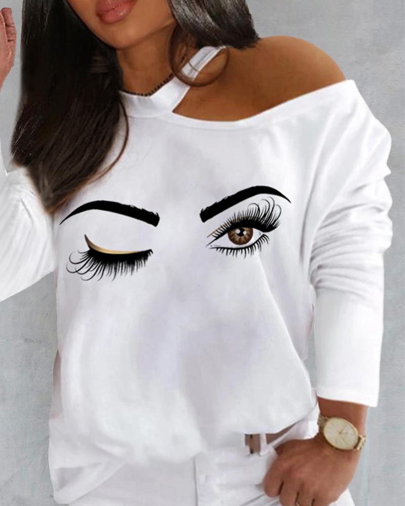 Plus Size Figure Print Cold Shoulder Top, White