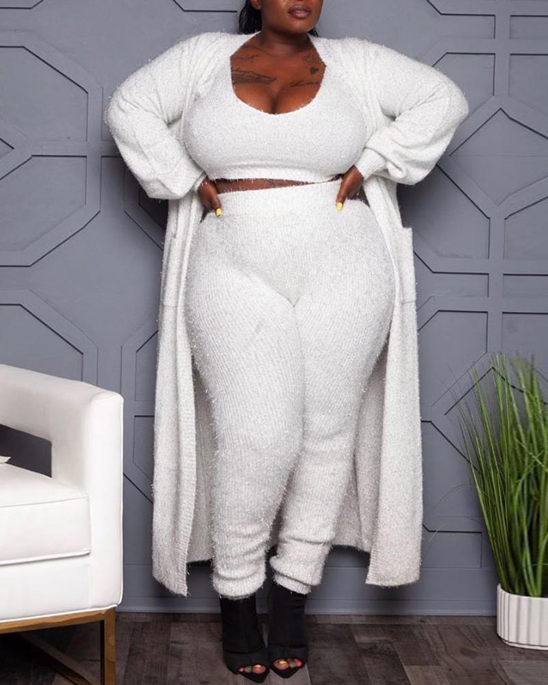 Plus Size Fluffy Plain Cardigan, White