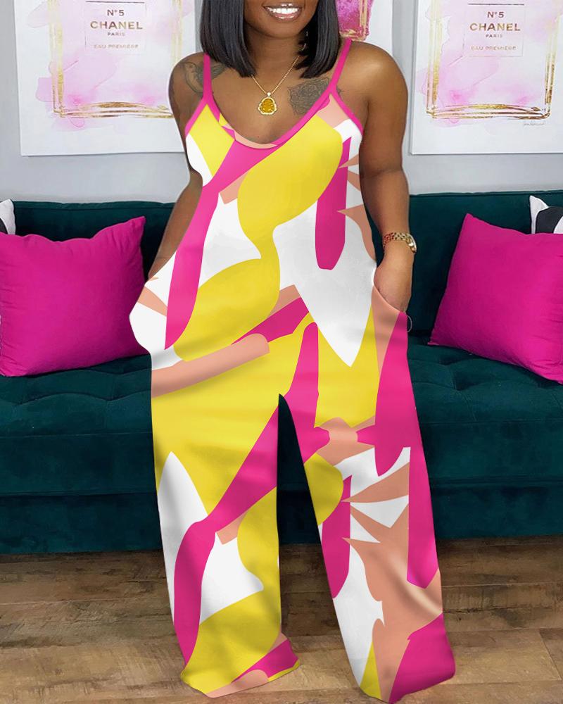 Plus Size Geometric Print Spaghetti Strap Jumpsuit, Yellow