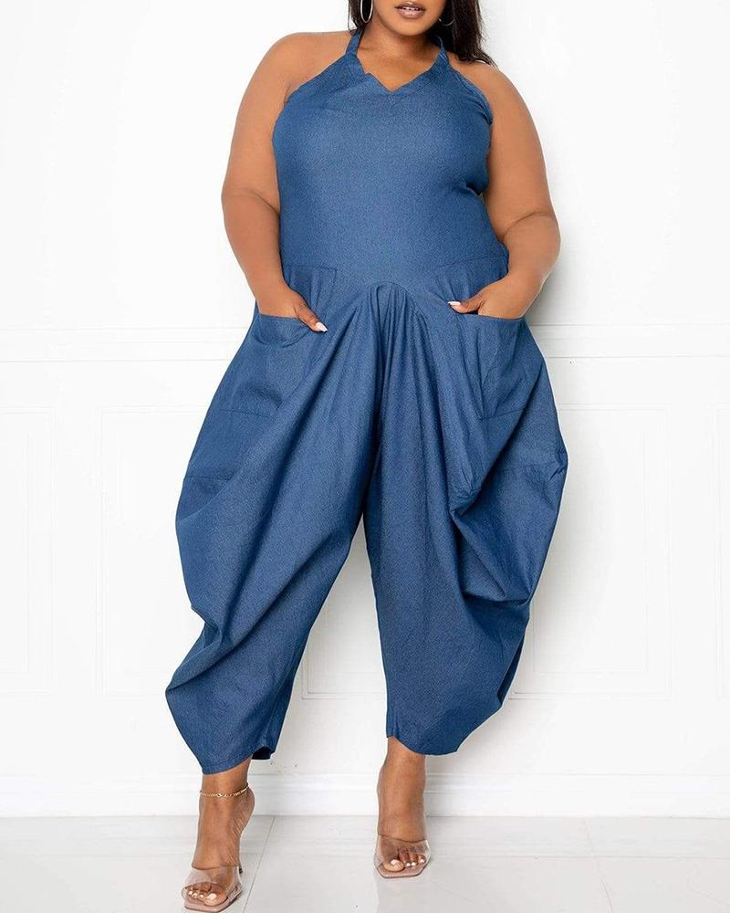 Plus Size Halter Harem Jumpsuit, Blue