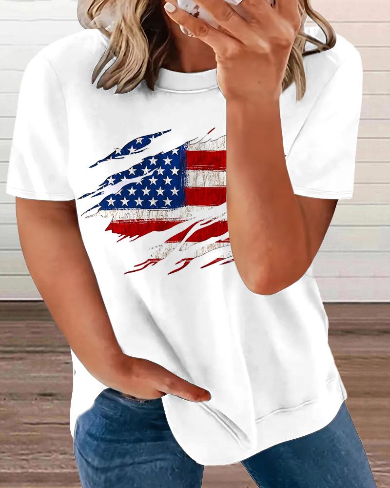 Plus Size Independence Day Flag Pattern Print Round Neck T-Shirt, White