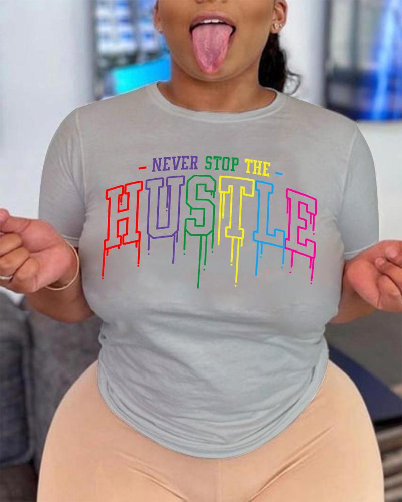 Plus Size Never Stop The Hustle Print T-shirt, Gray