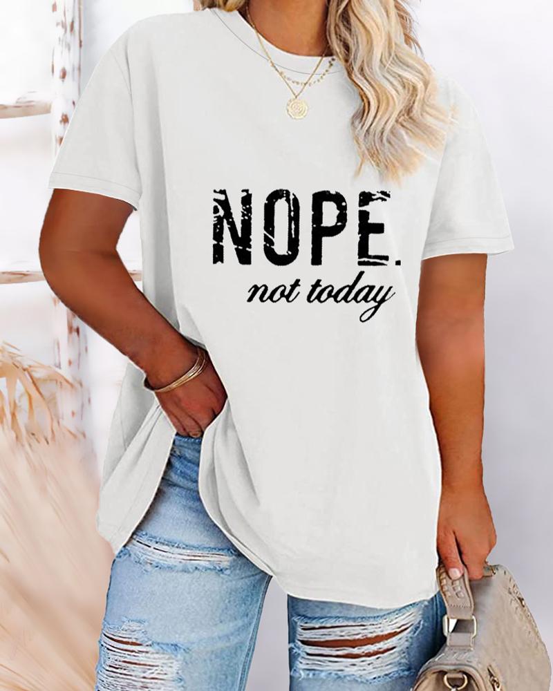 Plus Size Nope Not Today Print Round Neck Short Sleeve T-Shirt, White