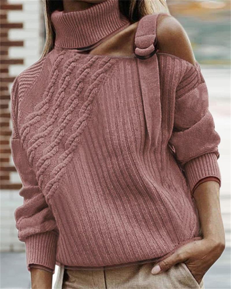 Plus Size O-Ring Cold Shoulder Cable Knit Sweater, Pink