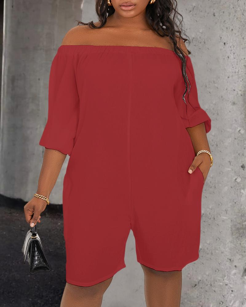 Plus Size Off Shoulder Pocket Design Casual Romper, Red