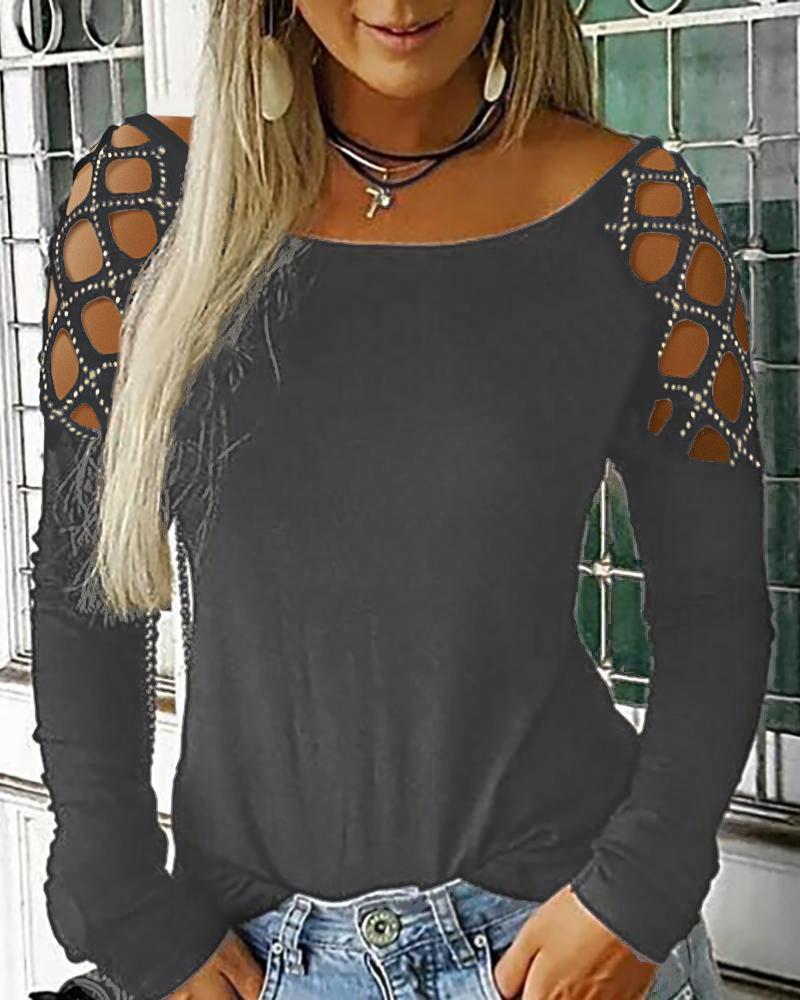 Plus Size Rhinestone Decor Cold Shoulder Top, Dark grey