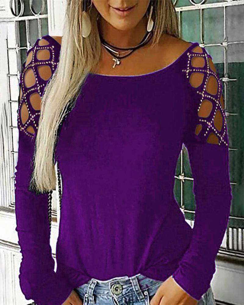 Plus Size Rhinestone Decor Cold Shoulder Top, Purple
