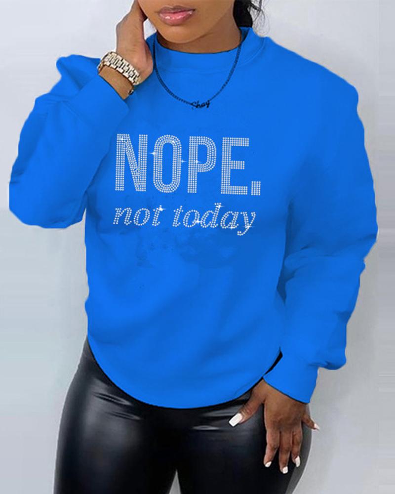 Plus Size Rhinestone Letter Pattern Long Sleeve Sweatshirt, Blue