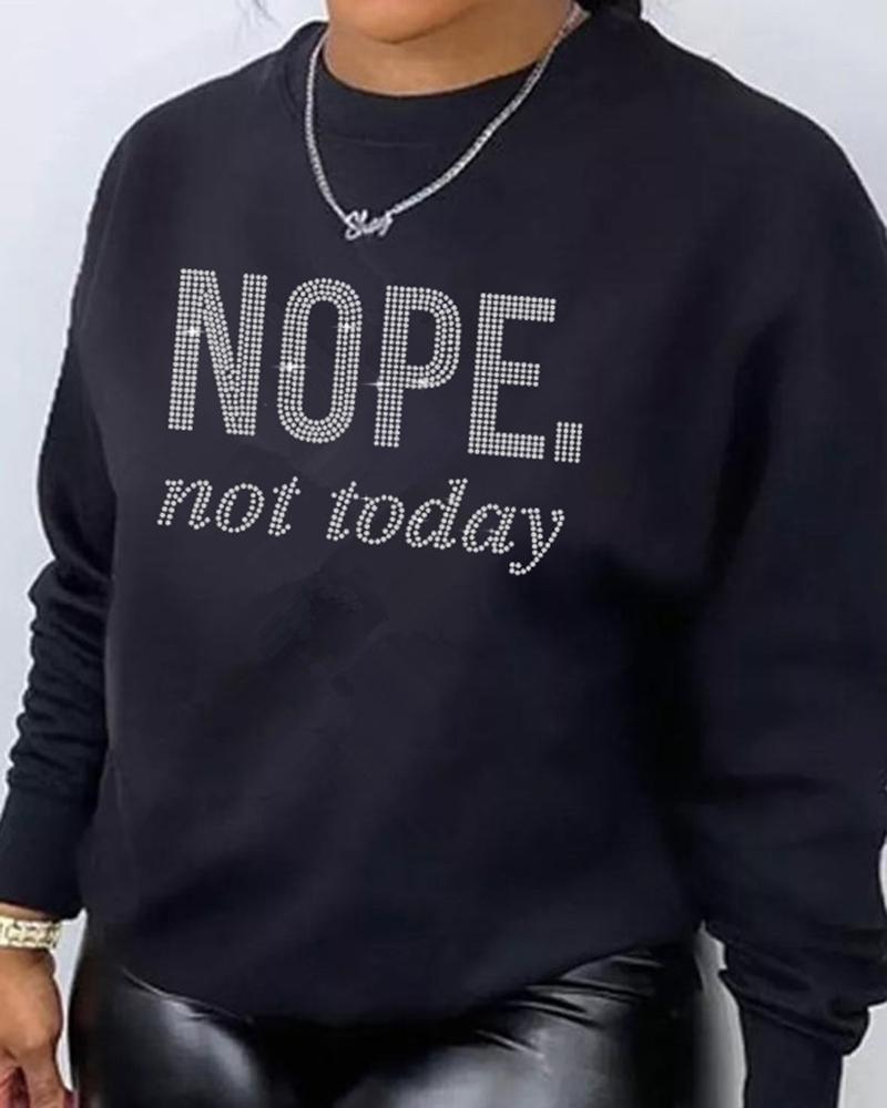 Plus Size Rhinestone Nope Not Today Funny Letter Pattern Sweatshirt, Black