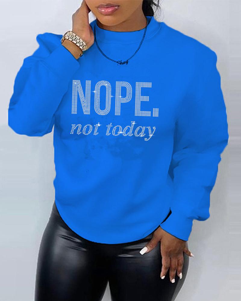 Plus Size Rhinestone Nope Not Today Funny Letter Pattern Sweatshirt, Blue