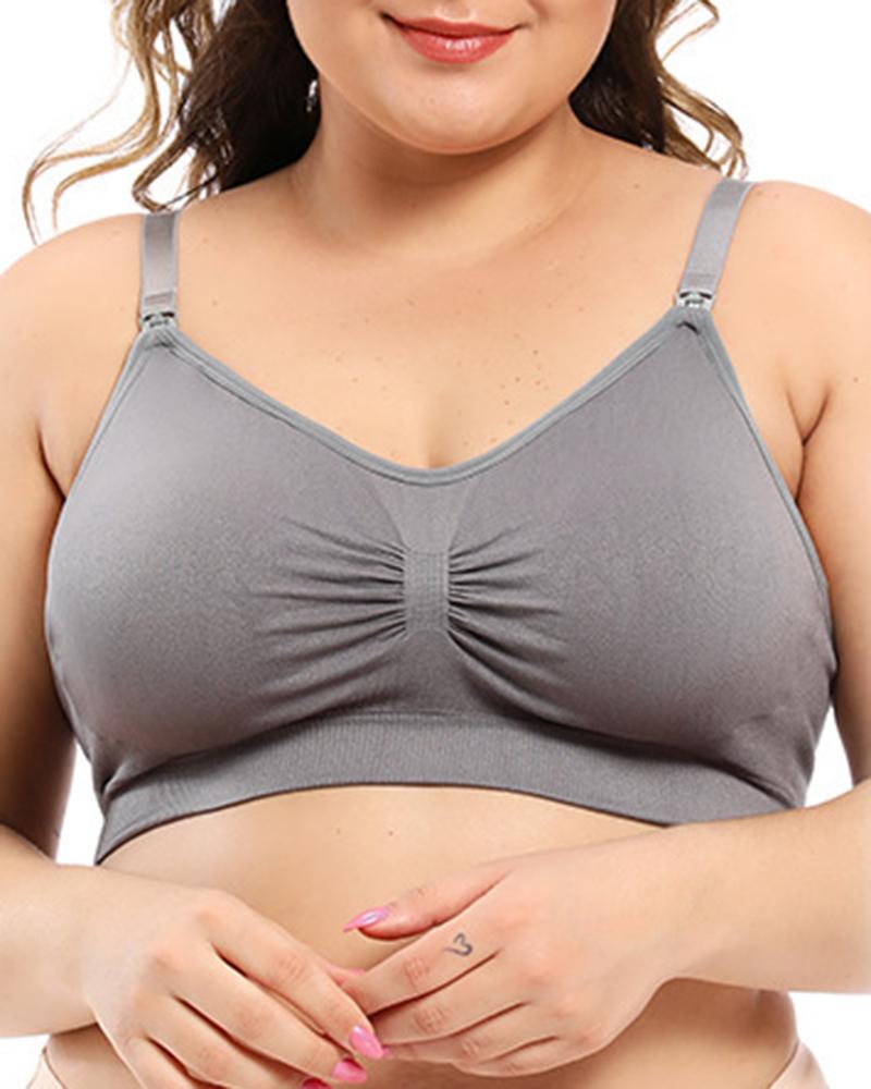 Plus Size Ruched Adjustable Strap Wireless Lifting Bra, Gray