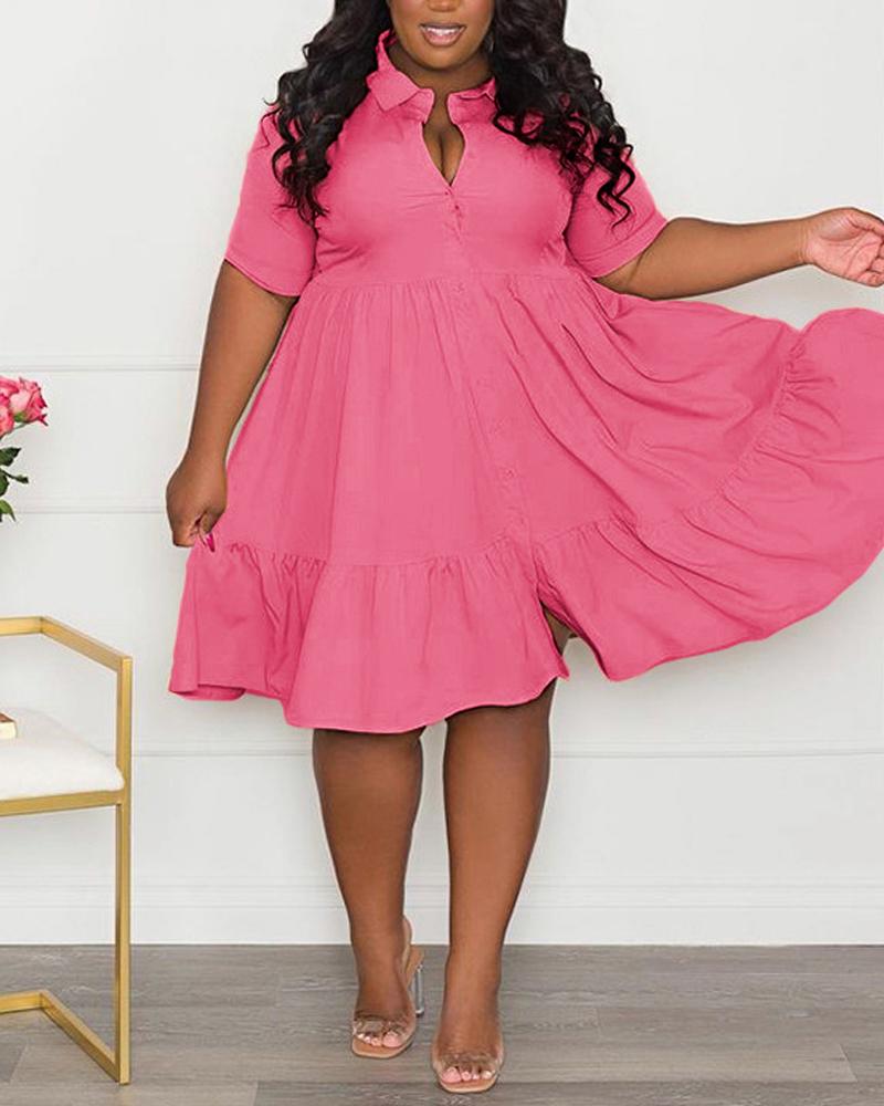 Plus Size Ruffle Hem Button Front Flowy Shirt Dress, Pink