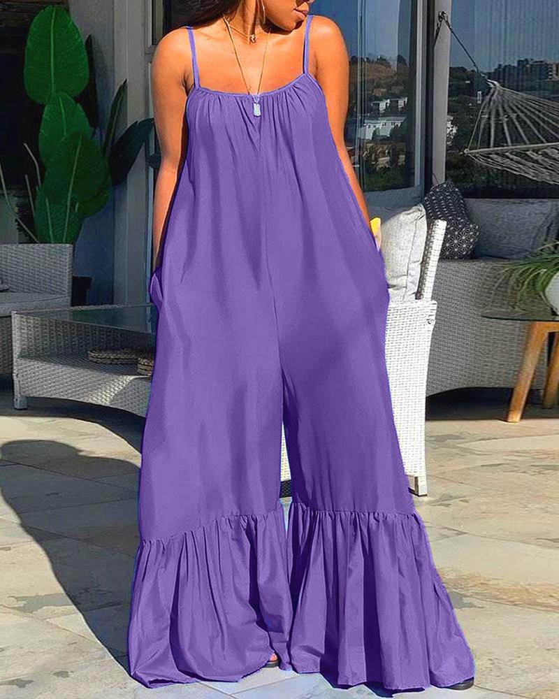 Plus Size Sleeveless Ruched Pocket Design Bootcut Jumpsuit, Purple