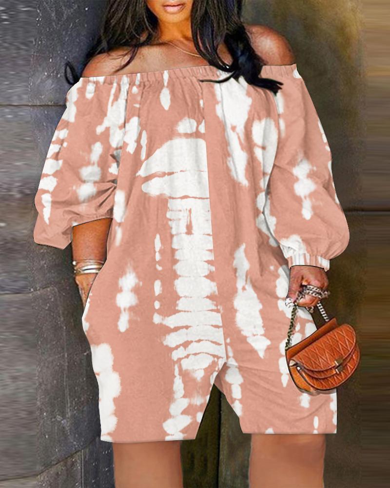 Plus Size Tie Dye Print Off Shoulder Romper, Pink