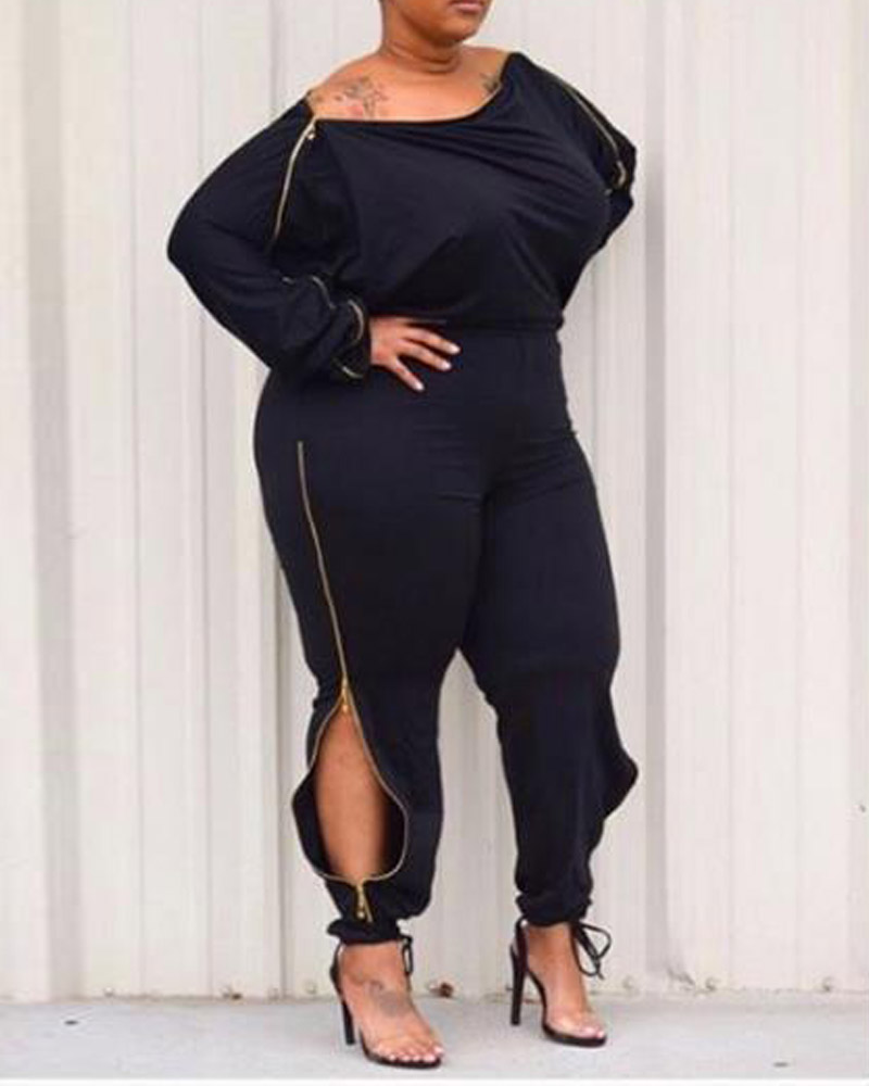 Plus Size Zip Detail Off Shoulder Jumpsuit, Black