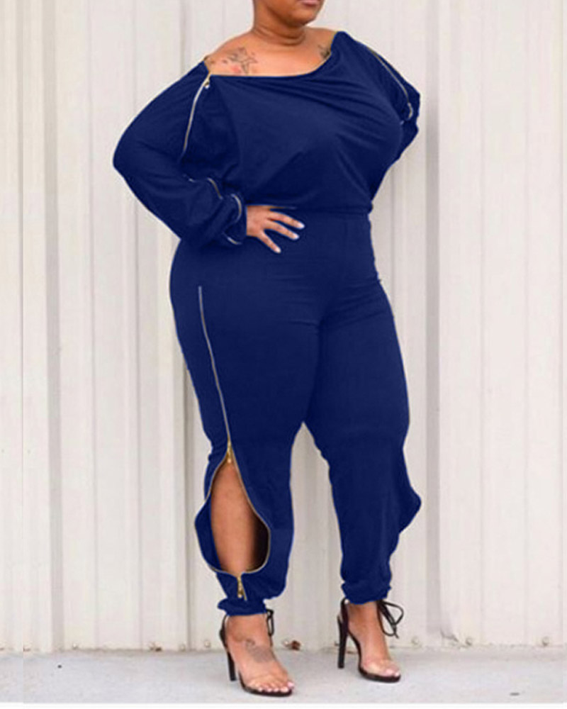 Plus Size Zip Detail Off Shoulder Jumpsuit, Blue