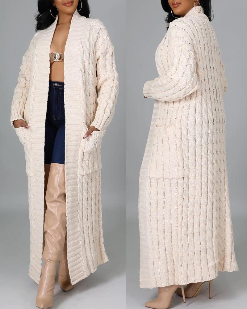 Pocket Design Cable Knit Cardigan, Apricot