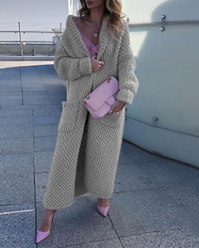 Pocket Design Open Front Cardigan, Gray