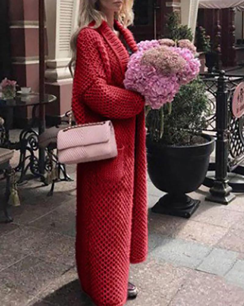 Pocket Design Open Front Cardigan, Red