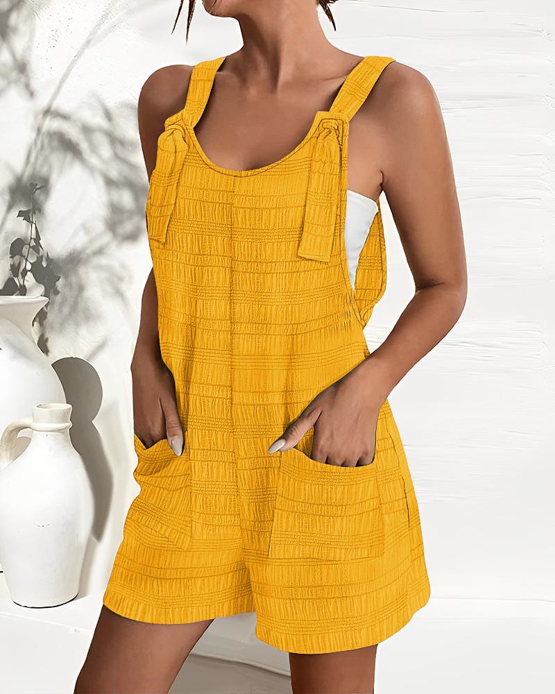 Pocket Design Textured Suspender Romper, Yellow