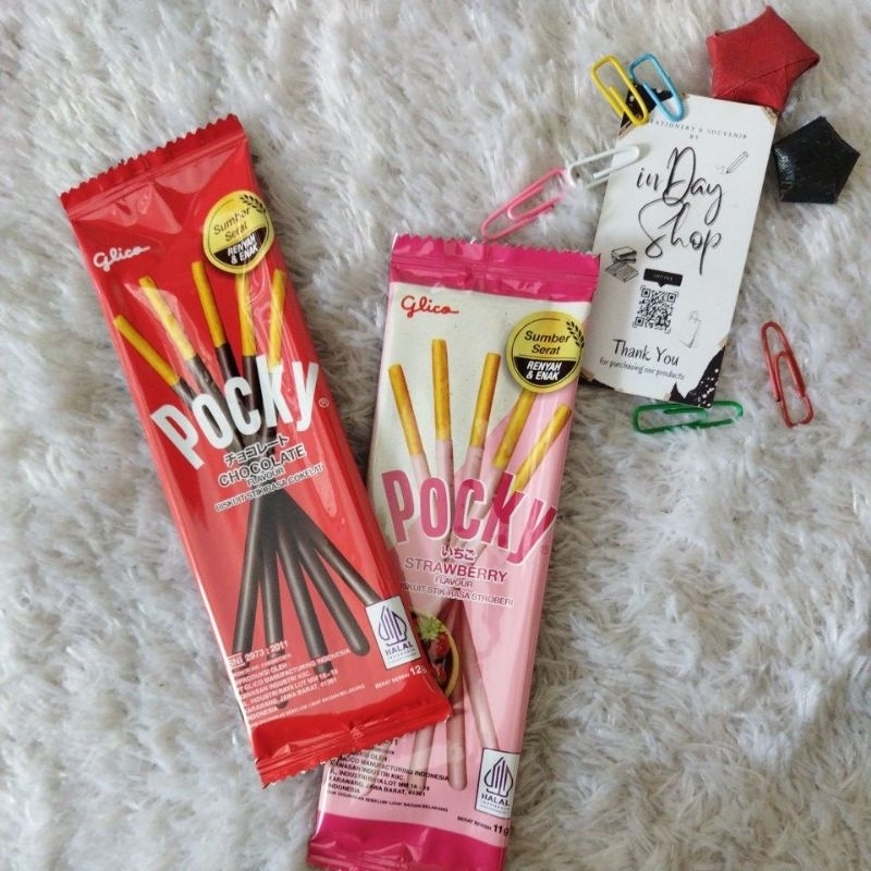 Pocky stik kemasan MINI (12gram), biskuit stik lapis Cokelat atau strawberry untuk cemilan kamu.