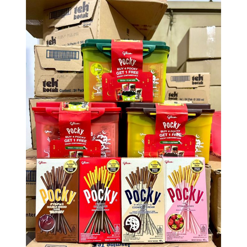 pocky nya yg besar ya, container box nya juga bagus tebal. Perbox isi 4 pocky ukuran besar variant nya udah mix.