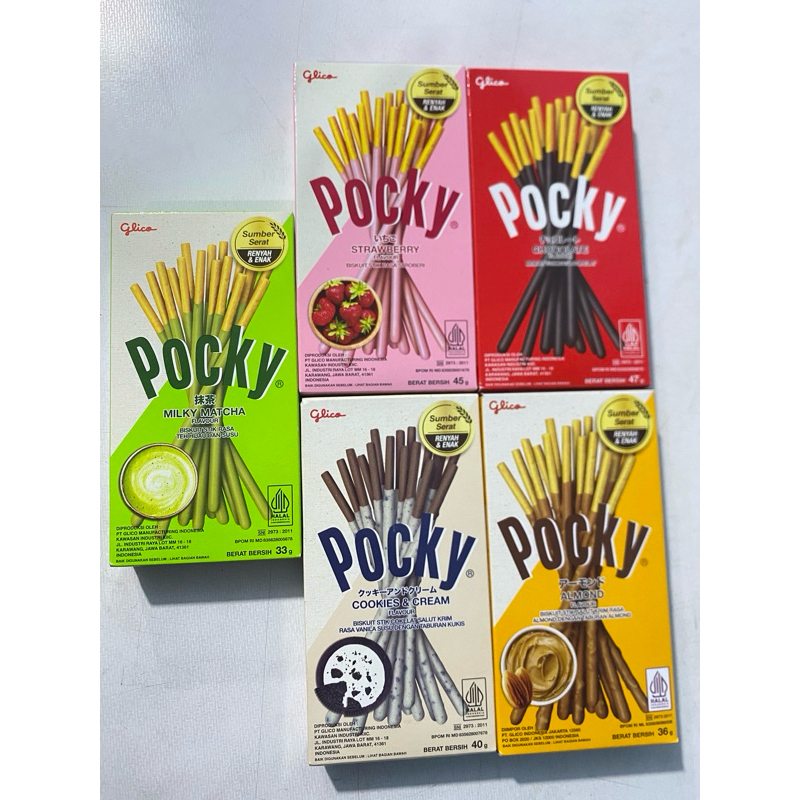 Pocky yg kami jual adalah keluaran resmi PT. Pocky Indonesia yg diimpor langsung dari Thai Glico Co Ltd - Thailand, beratribut lengkap BPOM dan Halal MUI. Varian2 yg tersedia: