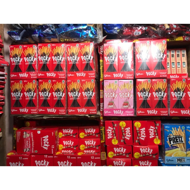 Pocky stik biskuit berlapis cokelat produksi Ezaki Glico. Selain Pocky cokelat sebagai rasa orisinal, Pocky juga tersedia dalam aneka rasa, di antaranya stroberi, susu cokelat, matcha, dan almond.