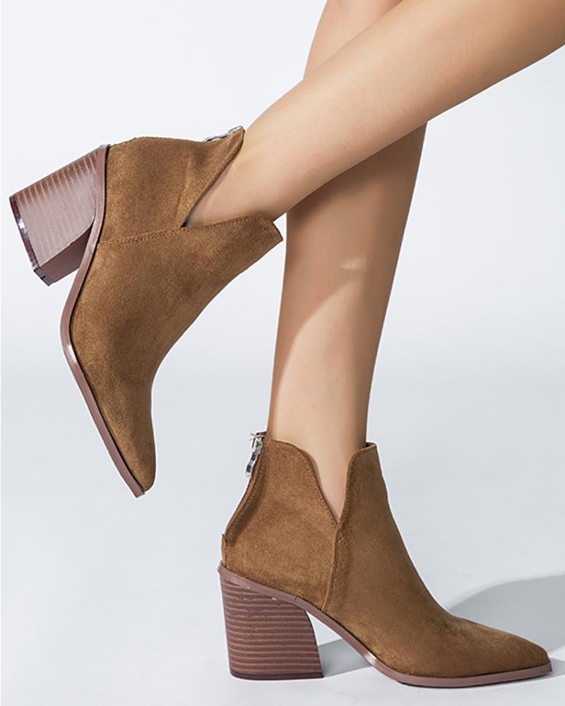 Point Toe Chunky Ankle Boots, Brown